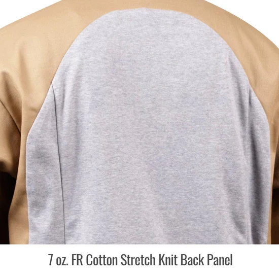 • 7 oz. FR cotton stretch knit back in heather gray
