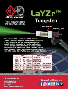 LaYZr Tungsten is non-radioactive and has great properties that make it best at automated or robotic applications in AC or DC currents, using inverter or transformer based constant current power sources.