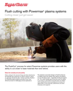 The patented consumable design for FlushCut features an angled nozzle bore design which delivers the plasma arc at a 45 degree angle – essentially bending the plasma arc. This unique design gives Powermax users the ability to cut closer or more flush to the base than ever before which significantly reduces grinding and increases the opportunity to reuse pad eyes, attachments and other temporary weld supports.