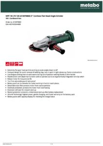 Metabo 18 LTX 125 5″ Cordless Flat Head Angle Grinder – 613070860