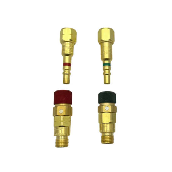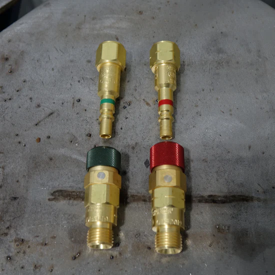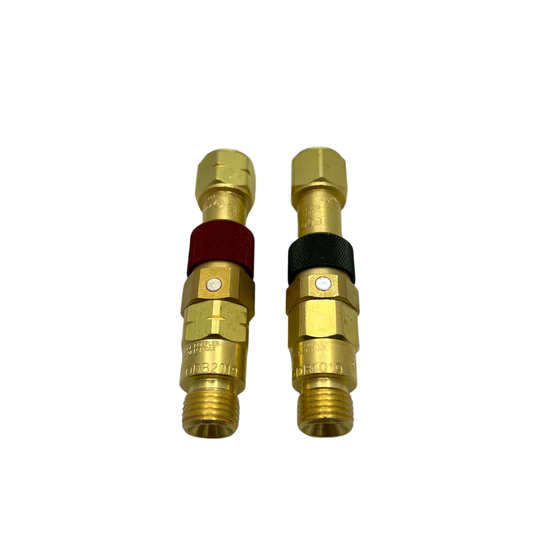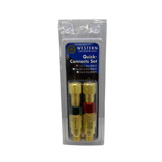 Western’s Quick-Connects provide for fast, reliable and positive connections and quick disconnect for torches, hoses and regulators. All models are colo-coded for gas service for added safety (Oxygen/Green, Fuel Gases/Red, Inert Gases/Blue). Oxy/Fuel Gas models included integral reverse flow Check Valve. Quick Connects fit all B-Size welding and cutting equipment.
